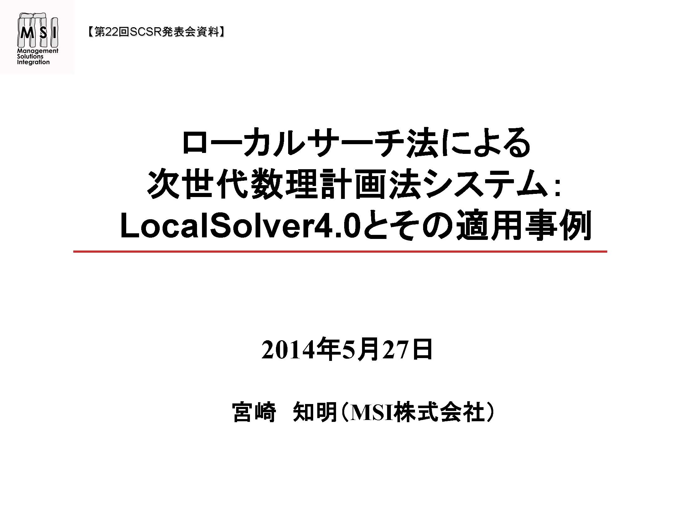 LocalSolverは、従来のLP問題、MIP問題、CP問題、NLP問題をカバーできます。本講演では、LocalSolverの概要および適用事例について紹介させて頂きます。