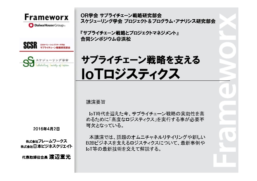 ITとリアルな小売サービスの多面的な連携として、顧客と商品・サービスの接点の多様化をめざすオムニチャネルが注目されています。サプライチェーンのソルーションベンダーとして、さまざまな業界に対して具体的なシステムの提供とコンサルティングを行って来た経験から、その可能性と難しさについてご報告し、最近の米国訪問で視察・体験した多様な事例も含めて、最新のトレンドと今後の方向についてお話致します。