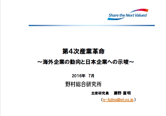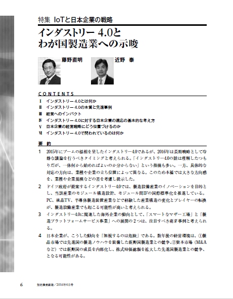 本講演では産業政策としてのインダストリ4.0を概観し、海外先進企業の動向を紹介し、日本の製造業への示唆について議論したい。