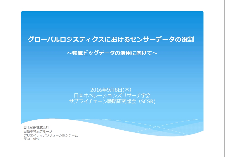ビッグデータの活用が加速している。農産物輸出において、定温・庫内環境管理型のコンテナー輸送に携わってきた経験を元に、国際物流では、どのようなデータが利用されいるのかをセンサーデータを中心にご紹介し、TPP締結合意を受け官民の取り組みとして注目される農産物輸出事例などの紹介を通じ、今後の国際物流におけるビッグデータ活用について議論したい。
