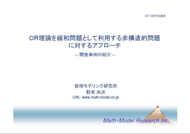 「OR理論を緩和問題として利用する非構造的問題に対するアプローチ -– 開発事例の紹介 --」