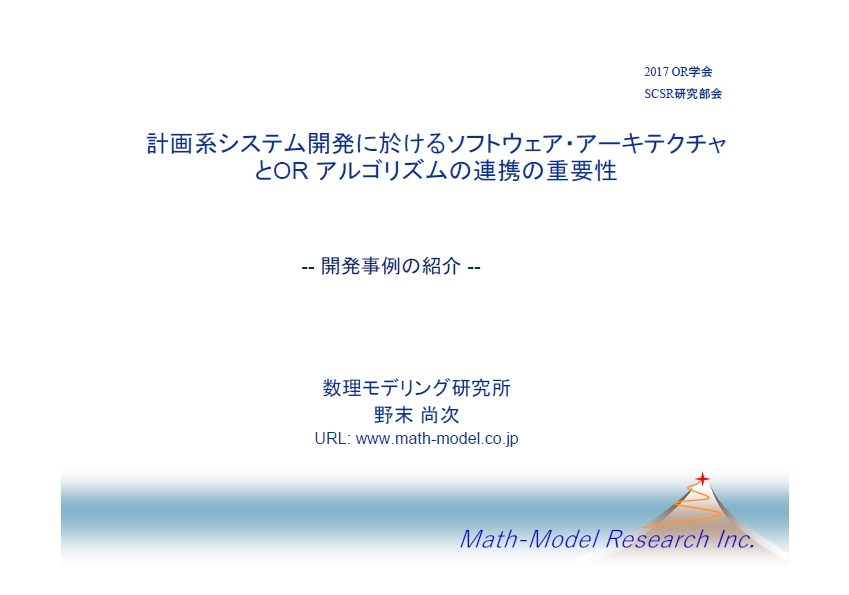 「計画系システム開発に於けるソフトウェア・アーキテクチャとOR アルゴリズムの連携の重要性 -– 開発事例の紹介 --」