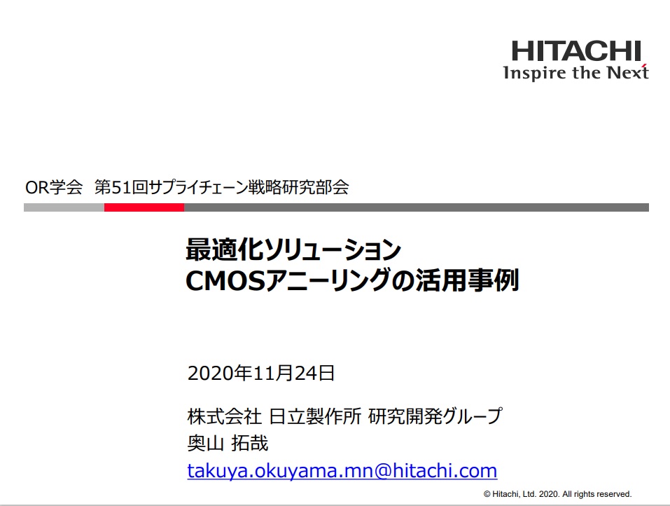 本分野において日立は、大規模並列演算を活用するアルゴリズムであるモメンタムアニーリングを含む最適化ソリューションとして、CMOSアニーリングを提案している。